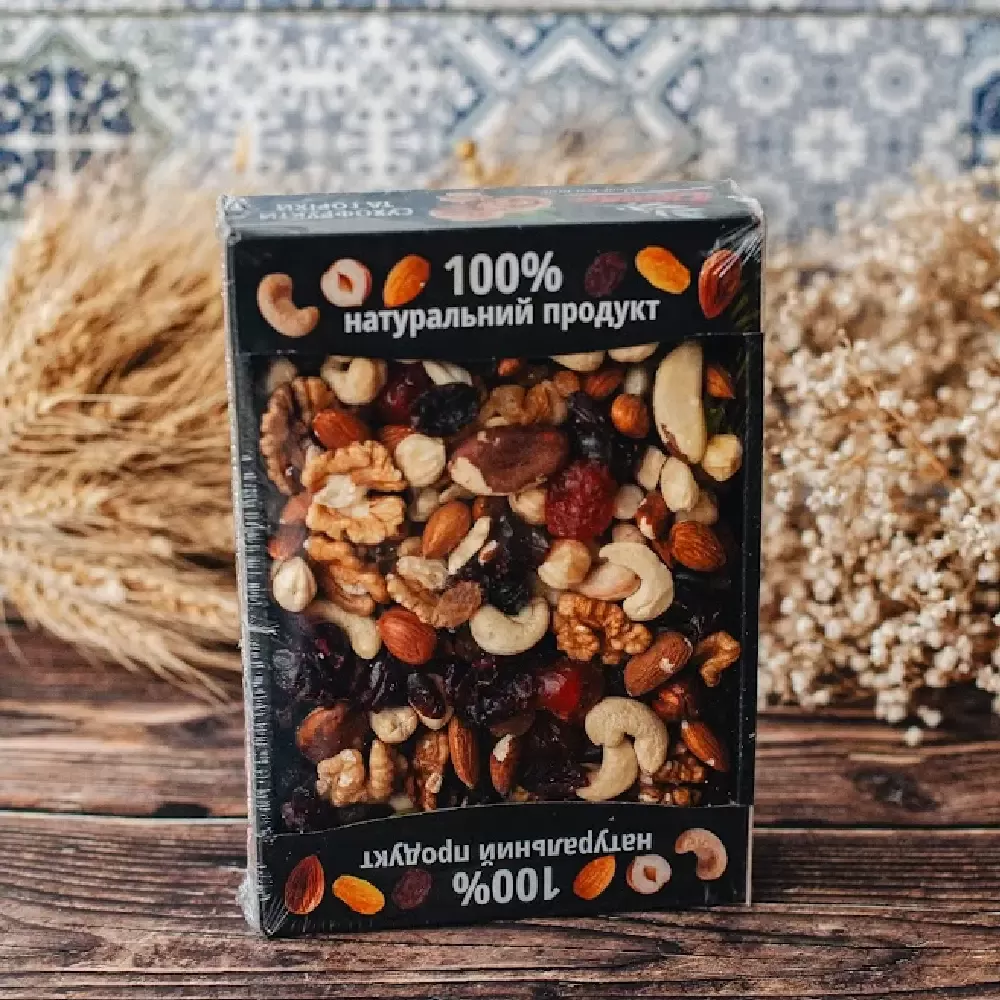 Мікс якісних горіхів та сухофруктів — це ідеальний вибір для здорового перекусу вдома, на роботі або в подорожі!